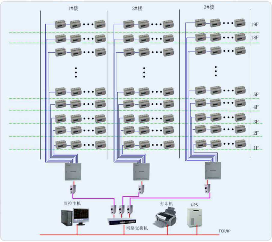 項(xiàng)目對黃金時代大廈各動力箱、照明箱等終端配電箱內(nèi)各用電回路用電量進(jìn)行電能管理,系統(tǒng)通過多功能的電能計量表計、通訊網(wǎng)絡(luò)和計算機(jī)軟件,實(shí)現(xiàn)各用電設(shè)備在運(yùn)行過程中的實(shí)時數(shù)據(jù)采集、數(shù)據(jù)計算、數(shù)據(jù)統(tǒng)計、用電分析等,保證復(fù)雜供配電系統(tǒng)的安全可靠系數(shù),實(shí)現(xiàn)故障快速響應(yīng);掌握大廈能源消耗的成本結(jié)構(gòu),確保節(jié)能計劃和措施順利實(shí)施;科學(xué)、智能管理,提高效率,降低損耗,實(shí)現(xiàn)經(jīng)營成本優(yōu)化。系統(tǒng)由站控管理層、網(wǎng)絡(luò)通訊層和現(xiàn)場設(shè)備層構(gòu)成。系統(tǒng)要求盡量減少集中采集數(shù)據(jù)的裝置以保證系統(tǒng)的通訊可靠性。