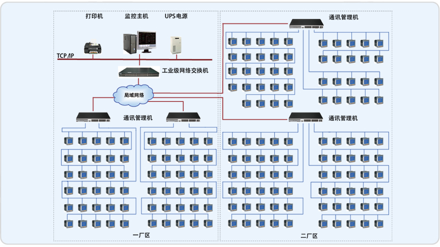 系統(tǒng)通過安裝在工廠電網(wǎng)中主要受電點(diǎn)和樞紐配電柜中的電能監(jiān)測儀表采集到配電網(wǎng)的各項(xiàng)電力參數(shù)信號(hào),再將信號(hào)轉(zhuǎn)換為數(shù)據(jù)傳輸?shù)接?jì)算機(jī)中,計(jì)算機(jī)對數(shù)據(jù)進(jìn)行存儲(chǔ)、計(jì)算和分類存儲(chǔ)到數(shù)據(jù)庫中,然后通過計(jì)算軟件將電能以報(bào)表、圖表的形式進(jìn)行展示。