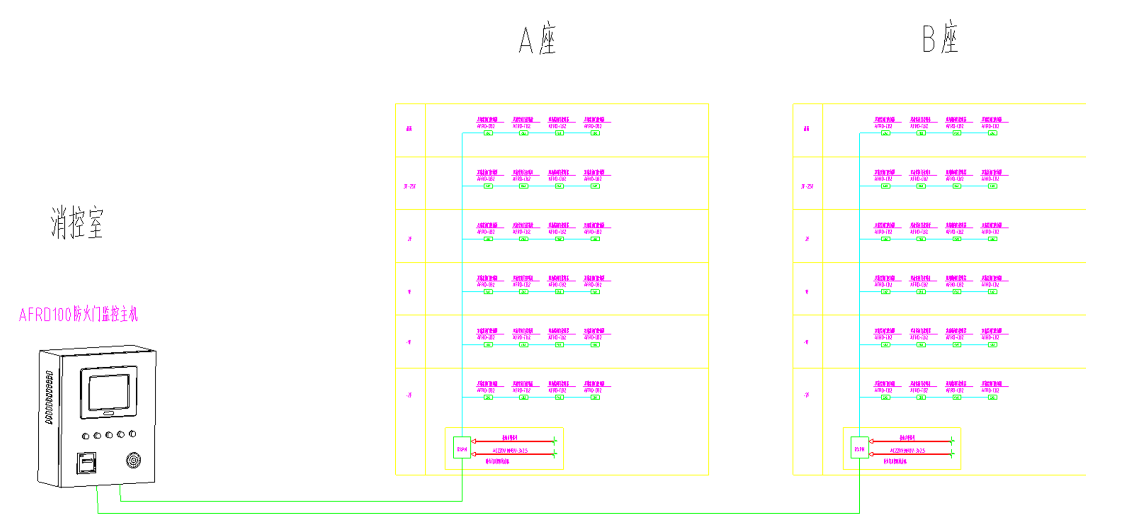 本項(xiàng)目為新疆•首府公館項(xiàng)目,現(xiàn)場(chǎng)各商住樓各樓道樓梯間及地下室區(qū)域的防火門安裝安科瑞AFRD系列防火門監(jiān)控模塊,在現(xiàn)場(chǎng)消防控制室設(shè)置安科瑞AFRD100/B壁掛式防火門監(jiān)控主機(jī),并在各棟樓內(nèi)安裝監(jiān)控區(qū)域分機(jī)實(shí)時(shí)監(jiān)控各防火門狀態(tài),防止防火門被異常開啟。