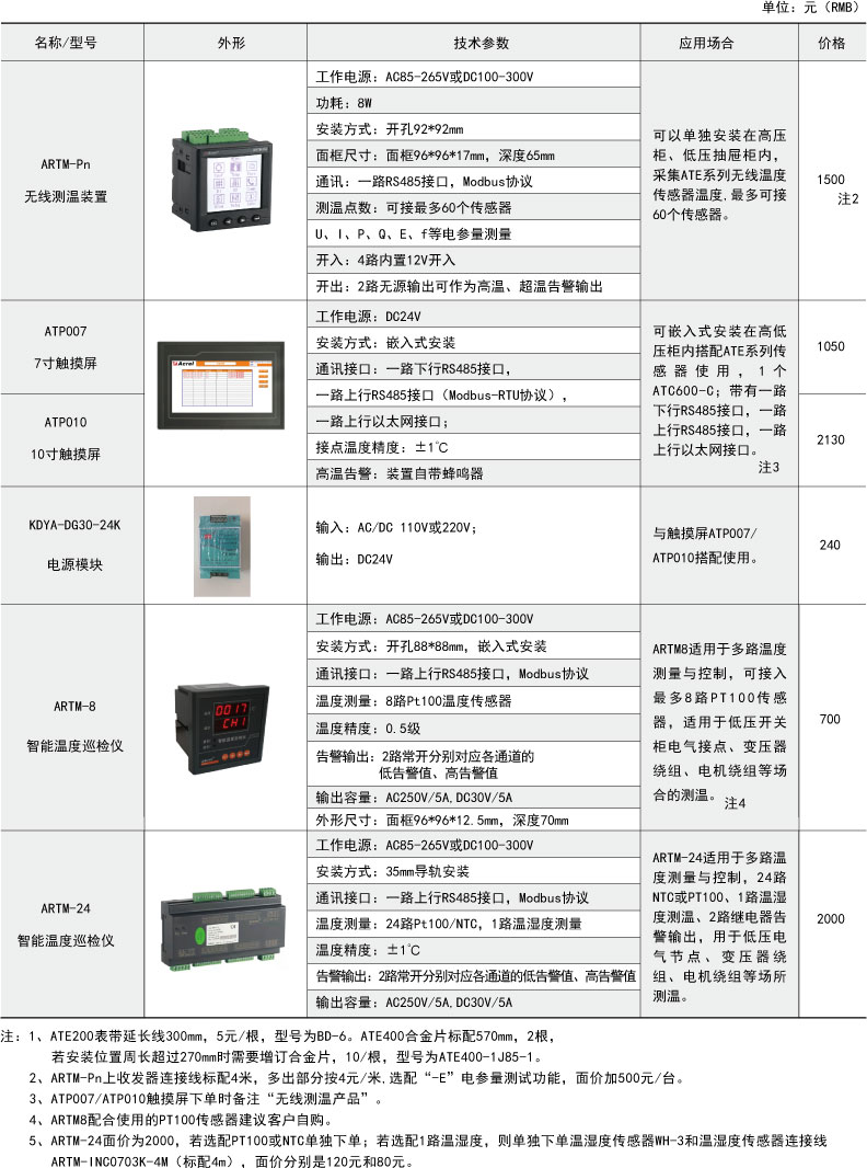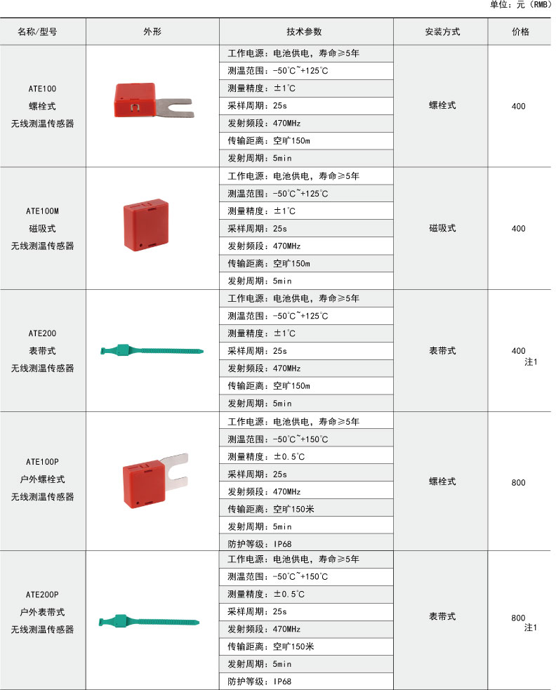 綜上所述,確定型號(hào)為:無(wú)線測(cè)溫裝置:ARTM-P9-300,1臺(tái);無(wú)線測(cè)溫傳感器:ATE300,9個(gè)
