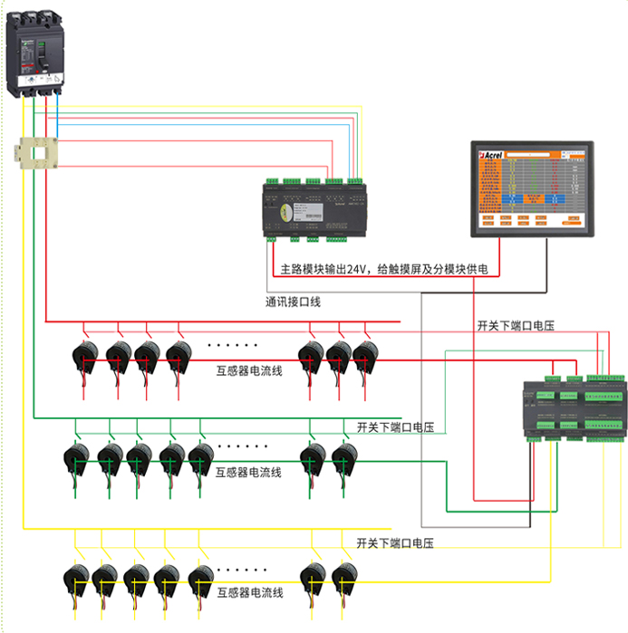 技術(shù)要求:輸入相電壓AC220V;進(jìn)線(xiàn)電流AC 5A變比自設(shè);出線(xiàn)電流變比AC100A/20mA;2路進(jìn)線(xiàn)檢測(cè);36路單相(或12路三相)出線(xiàn)檢測(cè);1路開(kāi)關(guān)量輸出。