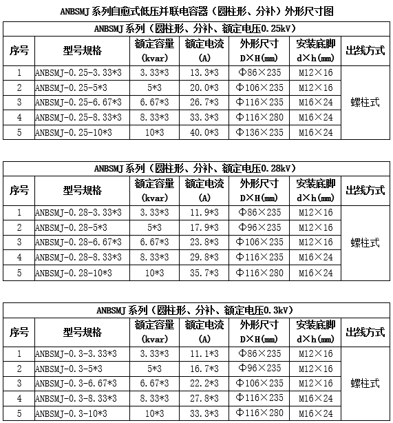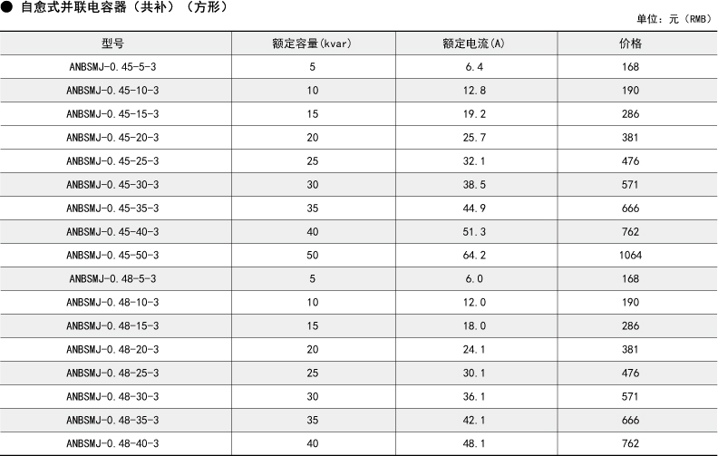 自愈式低壓并聯(lián)電容器主要使用在工頻系統(tǒng)中,用于提高電力系統(tǒng)的功率因數(shù),改善電力系統(tǒng)的電能質(zhì)量,提高供電系統(tǒng)的可靠性。應(yīng)用于0.4kV、50Hz低壓配電系統(tǒng)。具體型號(hào):ANBSBJ-0.45-20-3技...