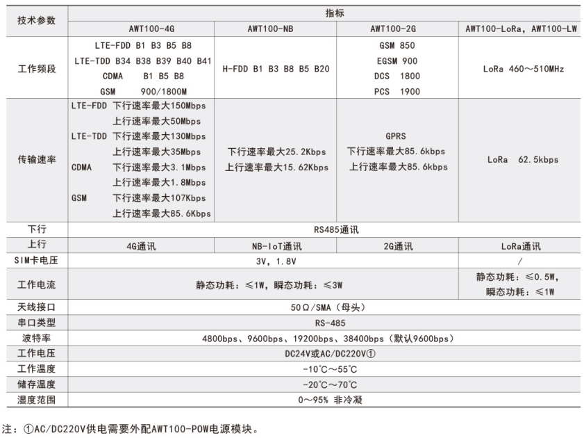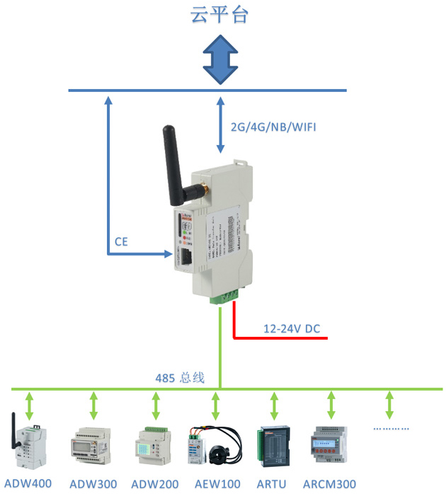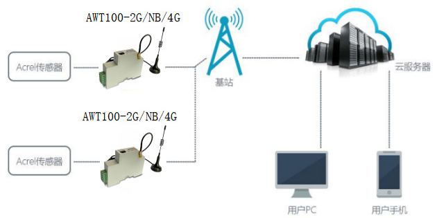 注:①AWT100-2G/NB/4G無(wú)線通信終端能通過(guò)安科瑞平臺(tái)協(xié)議與安科瑞服務(wù)器通訊。