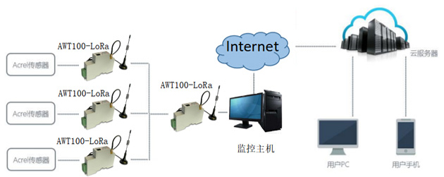 ■ AWT100-LW無(wú)線通信終端可通過(guò)LoRa通訊將數(shù)據(jù)上傳至服務(wù)器。