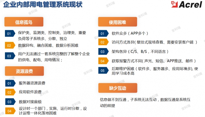 安科瑞長期專注于企業(yè)用戶,長期服務(wù)于企業(yè)用戶,有著豐富的企業(yè)內(nèi)部電能管理系統(tǒng)的改造經(jīng)驗(yàn),可以為客戶提供軟硬件整體解決方案,一體化智慧管理平臺(tái),助力企業(yè)實(shí)現(xiàn)雙碳目標(biāo)。