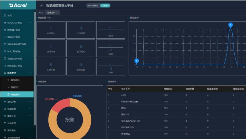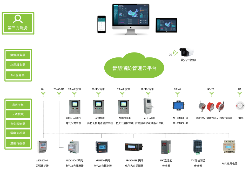 安科瑞智慧消防綜合管理云平臺基于物聯(lián)網(wǎng)、大數(shù)據(jù)、云計算等現(xiàn)代信息技術(shù),將分散的火災(zāi)自動報警設(shè)備、電氣火災(zāi)監(jiān)控設(shè)備、智慧煙感探測器、智慧消防用水等設(shè)備連接形成網(wǎng)絡(luò),并對這些設(shè)備的狀態(tài)進(jìn)行智能化感知、識別、定位,實時動態(tài)采集消防信息,通過云平臺進(jìn)行數(shù)據(jù)分析、挖掘和趨勢分析,幫助實現(xiàn)科學(xué)預(yù)警火災(zāi)、網(wǎng)格化管理、落實多元責(zé)任監(jiān)管等目標(biāo)。填補(bǔ)了原先針對“九小場所”和危化品生產(chǎn)企業(yè)無法有效監(jiān)控的空白,適應(yīng)于所有公建和民建,實現(xiàn)了無人化值守智慧消防,實現(xiàn)智慧消防“自動化”、“智能化”、“系統(tǒng)化”、用電管理“精細(xì)化”的實際需求。