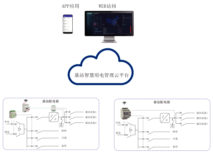 基站智慧用電云平臺通過對5G宏站和室分站點加裝交/直流智能監控設備、無線采集設備以及系統管理平臺,完成夜間無業務時段的下電操作,減少電能消耗,降低運營成本支出,以及提升通信設備供電線路狀態的實時監測保護功能;系統后臺對存儲的供電線路歷史電氣性能數據進行梳理、匯總、分析,找出故障原因,給出解決建議對策,減少后續同類故障的發生率,提升供電線路運維管控能力。