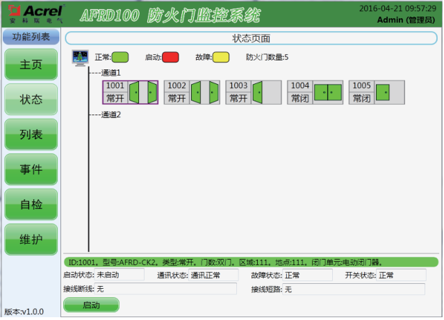 該界面以圖形化顯示方式直觀的展現了當前被監測的防火門的工作狀態,點擊防火門圖標后,系統會顯示該防火門的詳細信息。