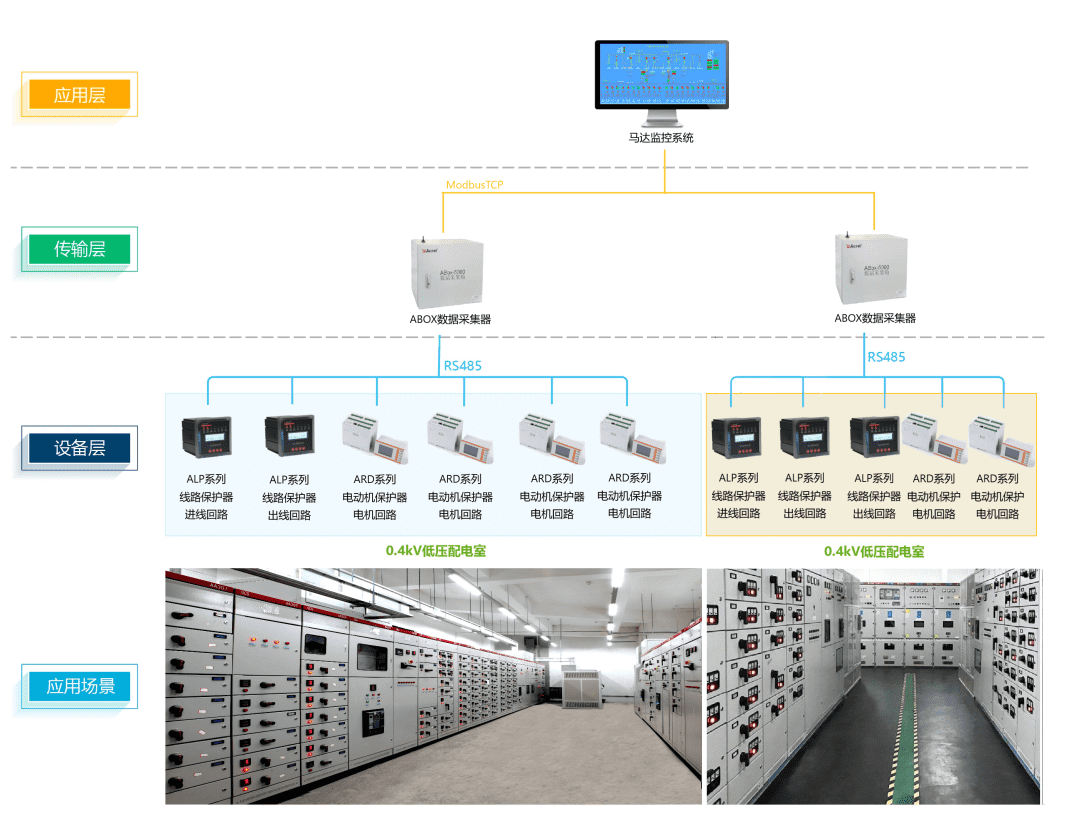 適用于電力、冶金、化工等各類工業(yè)現(xiàn)場(chǎng)的電機(jī)回路及饋線回路的實(shí)時(shí)監(jiān)控和自動(dòng)化管理。