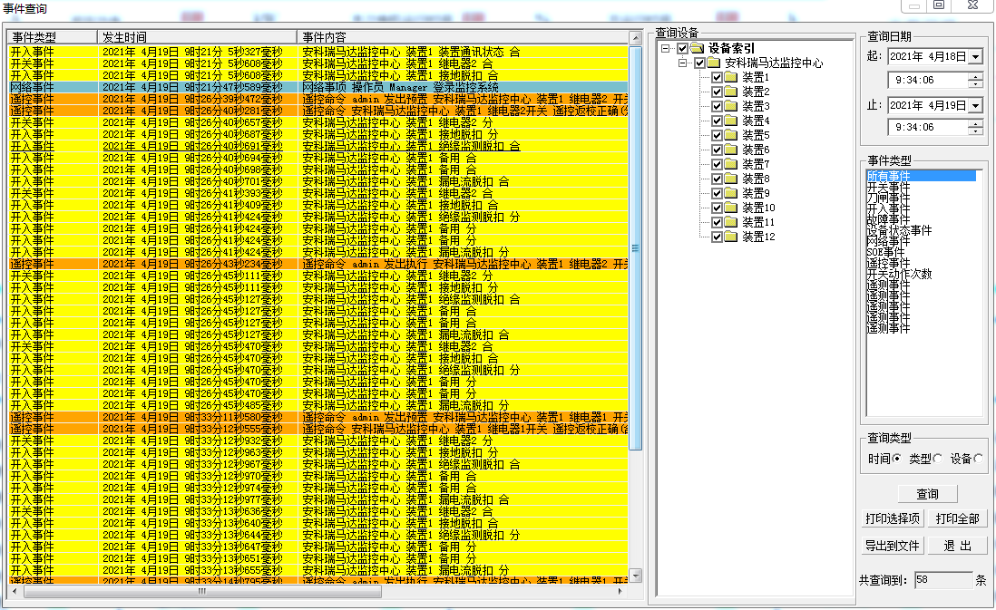 系統(tǒng)能夠?qū)b信變位、電機(jī)狀態(tài),以及電壓、電流、功率、功率因數(shù)越限等事件記錄進(jìn)行存儲(chǔ)和管理,方便用戶對(duì)系統(tǒng)事件和進(jìn)行歷史追溯、查詢統(tǒng)計(jì)、事故分析。